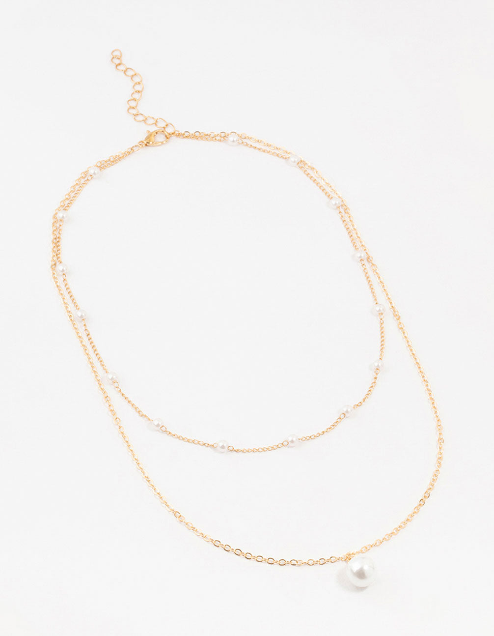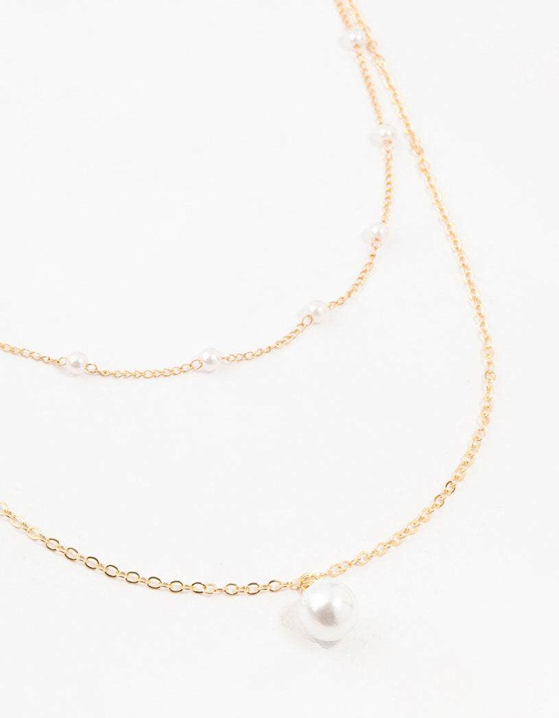 Gold Station Pearl Pendant Layered Necklace